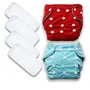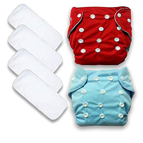 GOODMUNCHKINS Adjustable Cotton Pocket Diapers & Reusable Baby Washable Cloth Diaper Nappies with Wet-Free Inserts for Babies/Infants/Toddlers - 0-12 Months (2 Diaper + 4 Insert)
