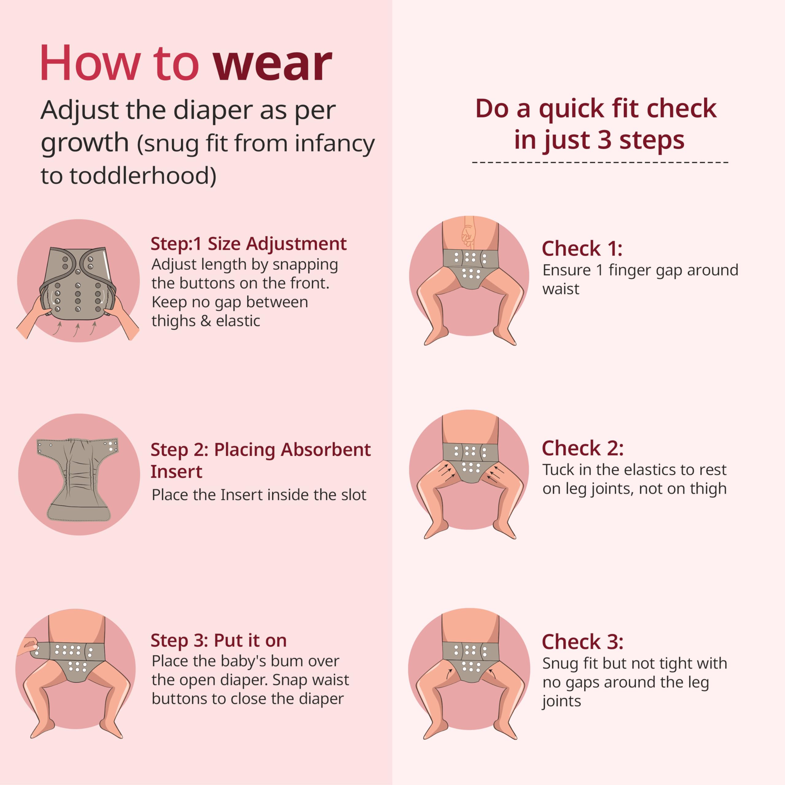 • Adjustable & Snug Fit: With adjustable snaps these diapers adapt to your baby's growth ensuring a comfortable snug fit from infancy to toddlerhood