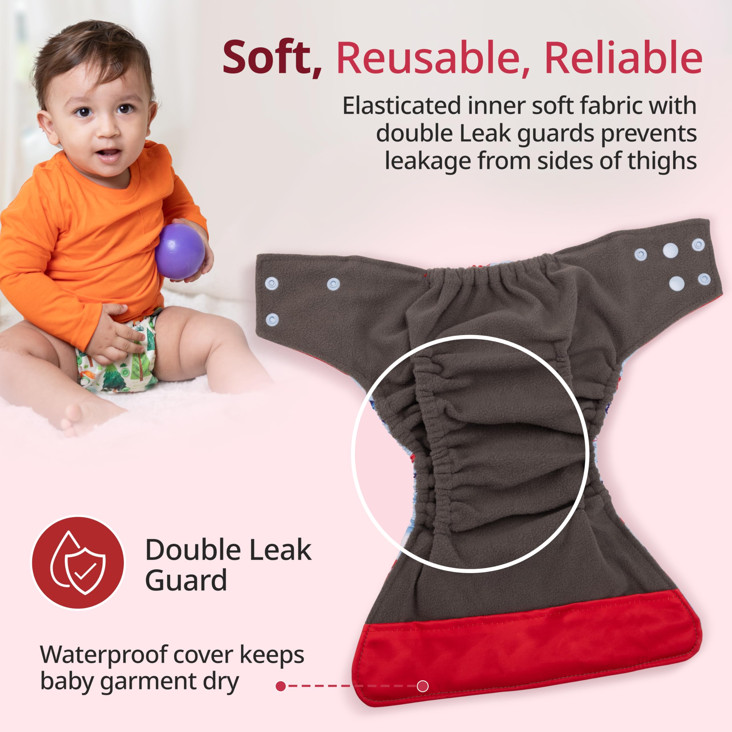 LuvLap Reusable Baby Cloth Diaper Double Leak Guard High Absorption Quick Dry Stain-Proof Comfort & Protection 3m+ Adjustable Waist & Height with snap Buttons Absorbent Insert Blue Ships