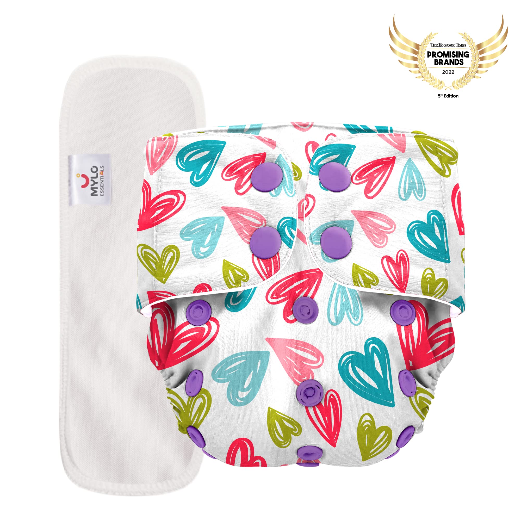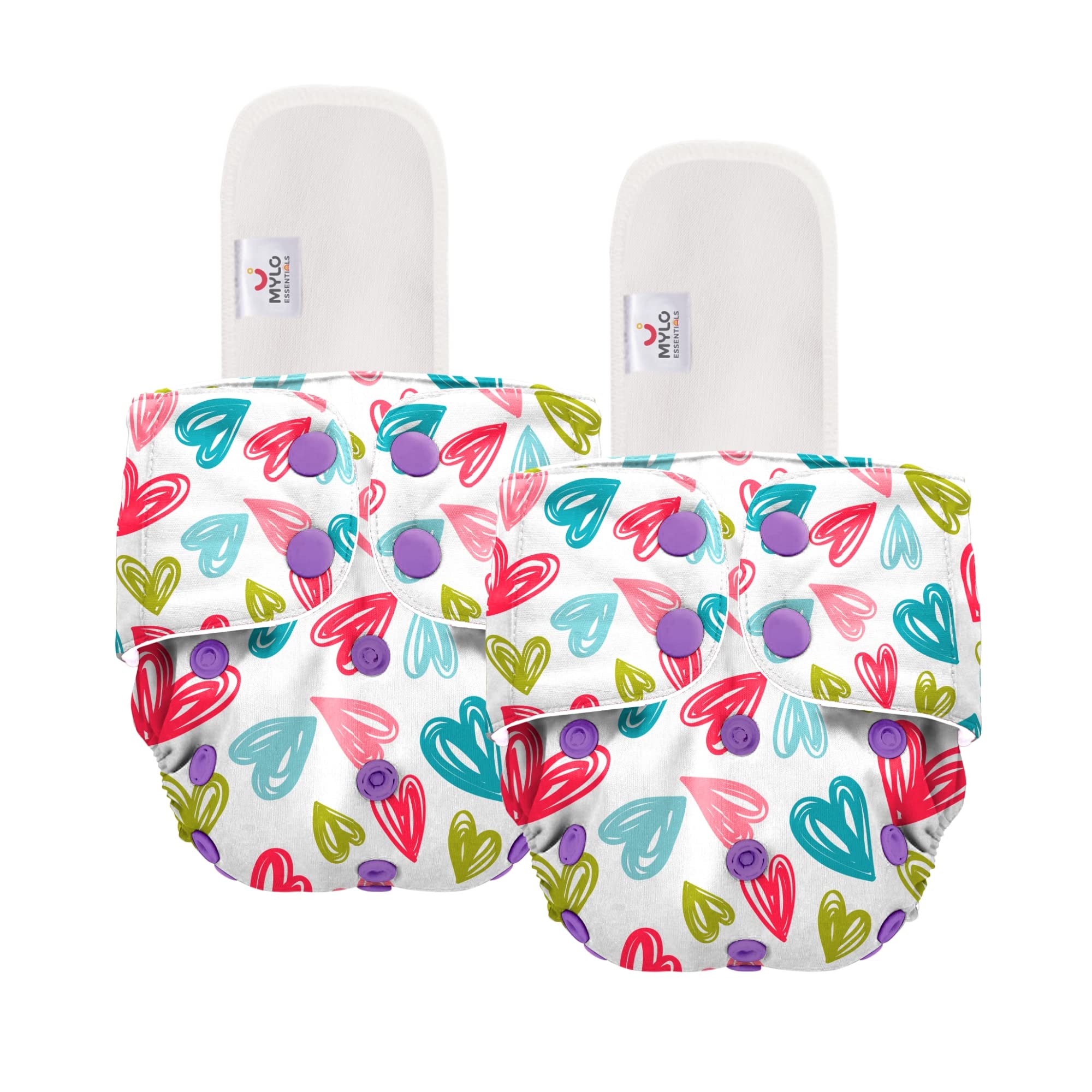 Mylo Essentials Leak Proof Baby Cloth Diaper Combo (2 Diapers + 2 Inserts) for 3 Months to 3 Years | Oeko Tex Certified Washable & Reusable Baby Cloth Diaper | Free Size
