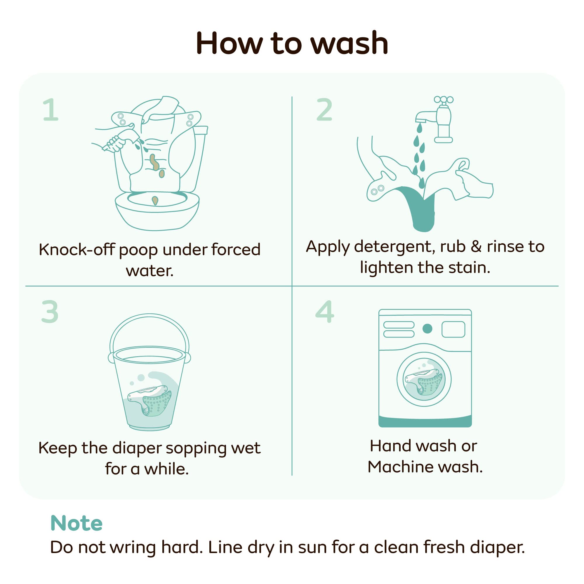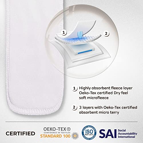 Washable & Absorbent - These cloth diapers are washable. You can wash the outer cover along with the inner soaker pad in a washing machine or hand wash them. These can be reused for years. The inserts are highly absorbent and will keep your baby dry for a