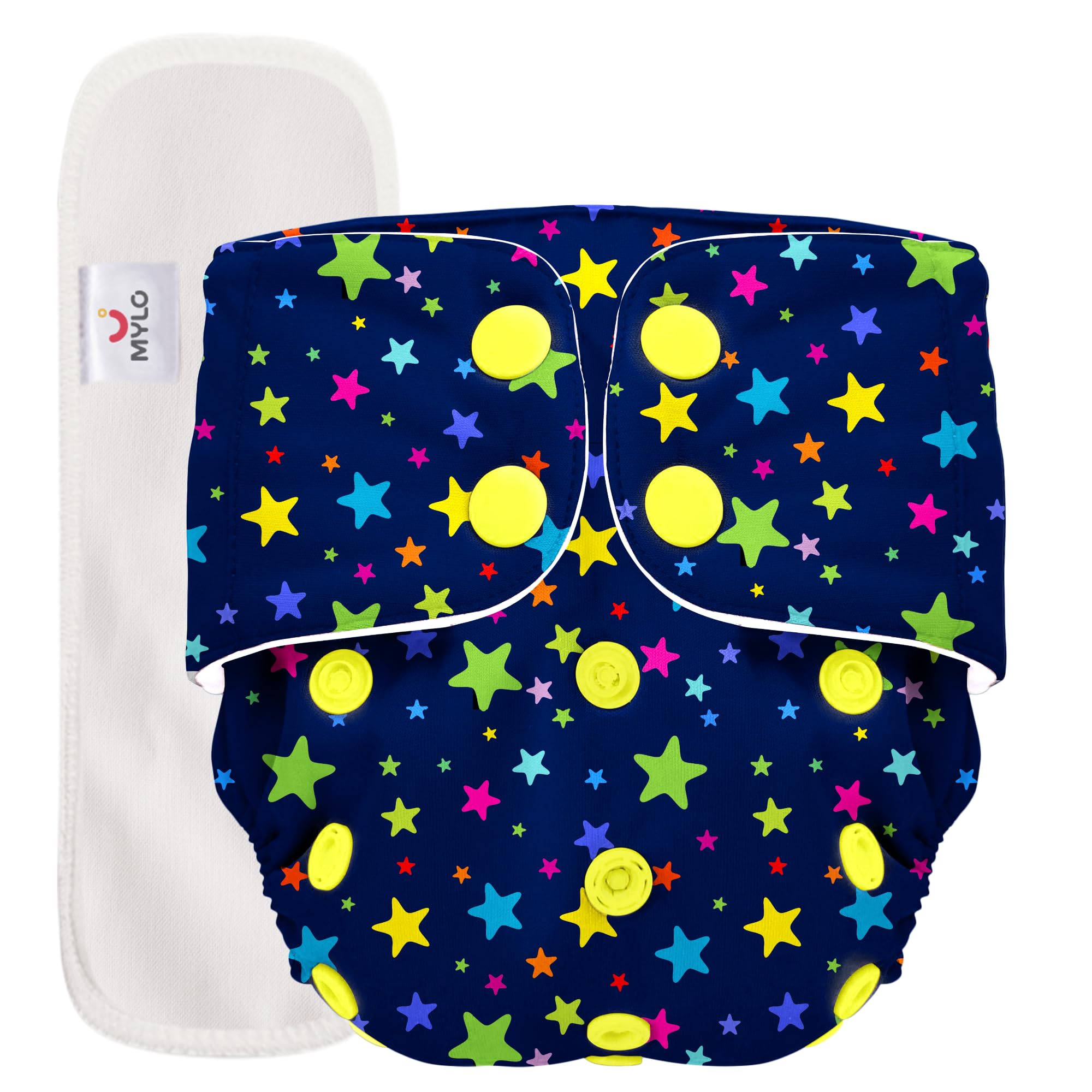 Mylo Leak-Proof Baby Cloth Diaper Combo (1 Diapers + 1 Inserts) | Free Size (3M-3Y) | High Absorption | Quick Dry | Oeko-Tex Certified | Washable - Twinkle Twinkle