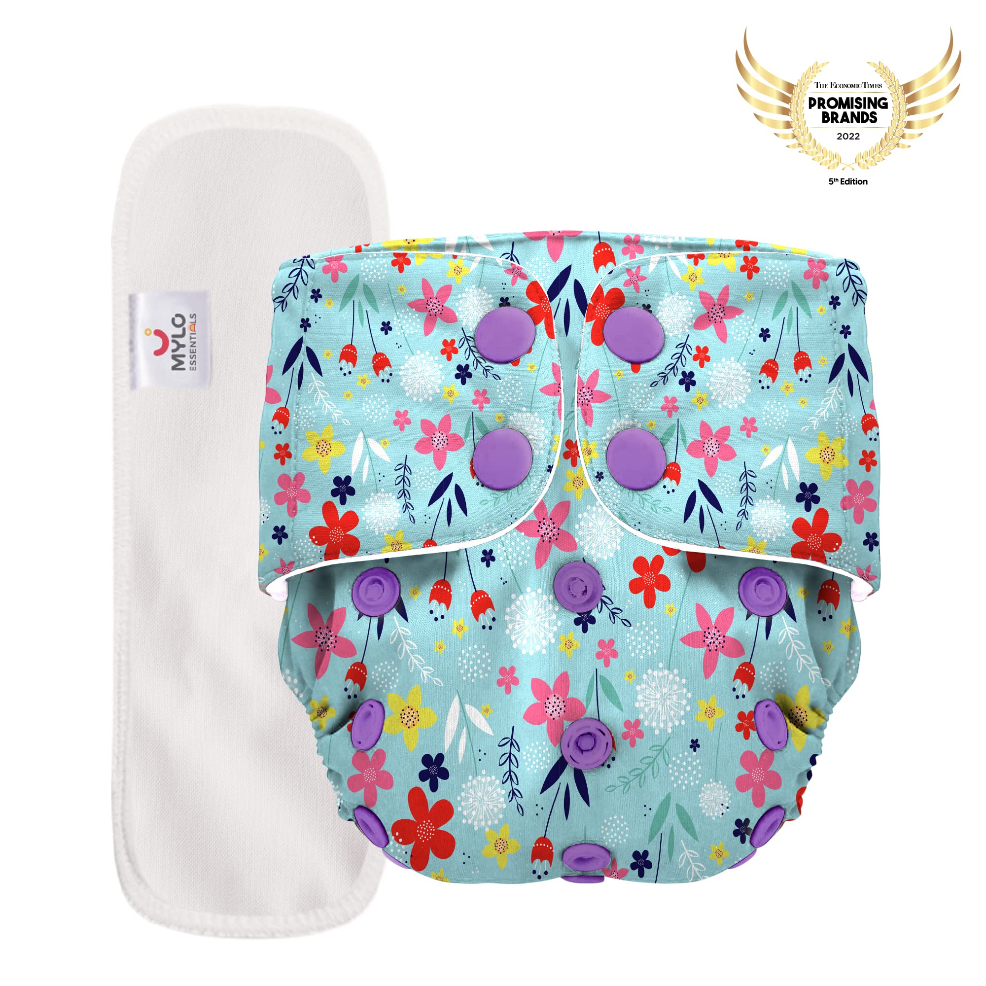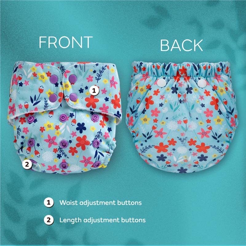Mylo Leak Proof Baby Cloth Diaper Combo (2 Diaper & 2 Inserts) for 3 Months to 3 Years Babies | Oeko Tex Certified Washable & Reusable Baby Cloth Diaper | Free Size - Floral Spring 2