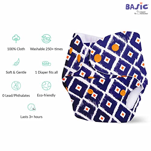 superbottoms 3 Basic Assorted Reusable Cloth Diaper For Babies 0-3 Years | Freesize Adjustable Washable & Organic (Comes With Quick Dry Foladable Dry Feel Pad /Soaker / Insert)