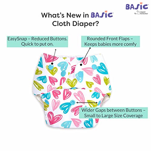 superbottoms 3 Basic Assorted Reusable Cloth Diaper For Babies 0-3 Years | Freesize, Adjustable, Washable & Organic (Comes With Quick Dry Foladable, Dry Feel Pad /Soaker / Insert)