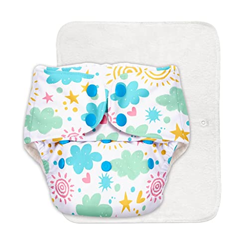 WATERPROOF ADJUSTABLE FREESIZE REUSABLE - Basic cloth diapers fit babies from 5kgs to 17kgs. You can easily adjust the size of the diaper to Small/Medium or Large/Extra Large depending on your baby's weight by snapping the buttons in the front. This helps