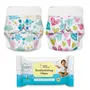 SuperBottoms BASIC - 2 Reusable Cloth Diaper (ASSORTED) | 3m-3Yrs & Pack of 40 XtraHydrating™ Wipes FREE | Unscented Baby Wipes, 3.5x extra moisture | Adjustable Organic Diapers for day time (with 2 quick dry pad)