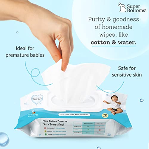 ¬SuperBottoms XtraHydrating Wipes has 3.5x extra moisture to hydrate & nourish the skin while cleaning. It contains 98% Pure Water & Calendula Oil extracts.