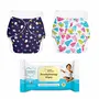 superbottoms Basic - 2 Reusable Cloth Diaper (Assorted) For Babies & Pack Of 40 Xtrahydrating Wipes Free | Unscented Baby Wipes, 3.5X | Adjustable Organic Diapers For Day Time (With 2 Quick Dry Pad)