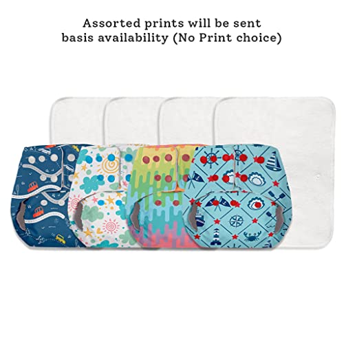 SuperBottoms BASIC - 4 Certified Soft Fleece Lined Freesize Adjustable, Washable and Reusable Cloth Diaper for babies 0-3 Years | Cloth Diaper for babies with 4 Cotton terry inserts (Assorted Prints)
