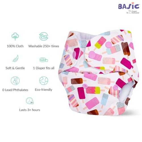 Adjustable Diaper that fits from 3 months - 3 years (5kg - 17kg) Contents Features - CPSIA (US) certified cloth diapers. Tested-free for lead and phthalates. - Waterproof washable & reusable cloth diaper that fits babies from 3 months to 3 years. - It lasts up to 5 hours for average wetting babies. - Keeps the baby dry and comfortable.
