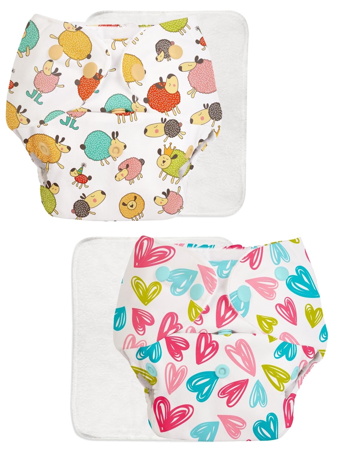 SuperBottoms BASIC Assorted Pack of 2 CPSIA Certified Cotton Cloth Diapers For Baby | Washable & Reusable | 0-3 Years | Freesize | Adjustable | Reduces Rash | With Quick Dry Pad/Insert