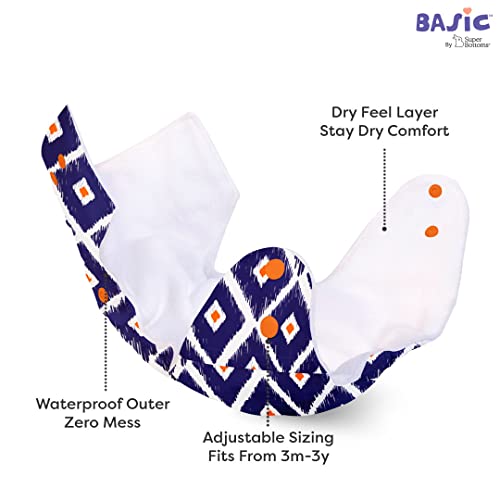 SuperBottoms BASIC Cloth Diaper for babies 0-3 Years for Day-time use | NEW Quick Dry UltraThin pads Lasts up to 3Hrs | Trim Fitting Dries 2 times faster | 0-3 Years | Tie-Dye