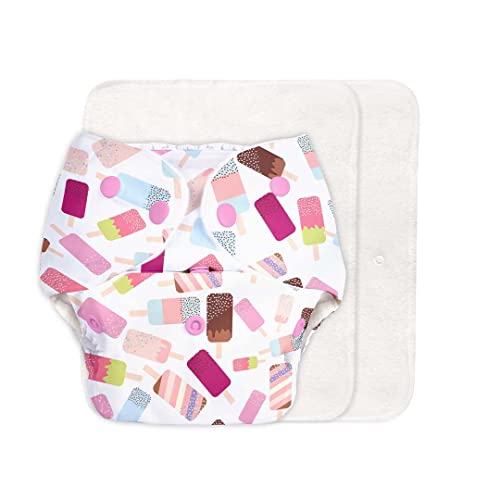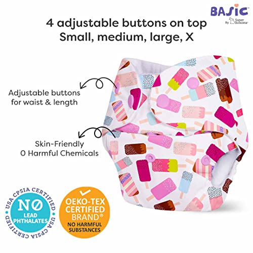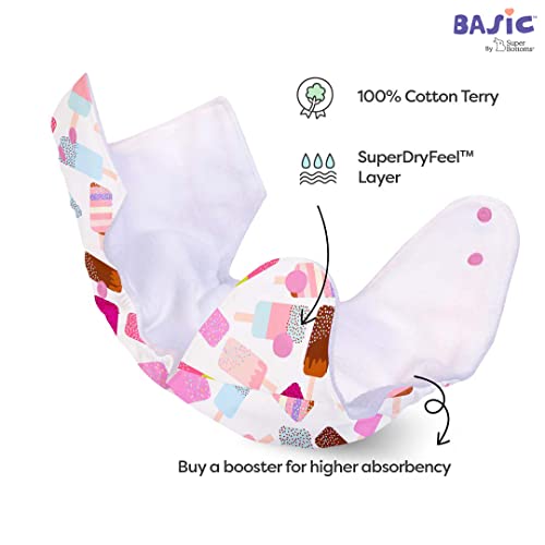 SuperBottoms BASIC Cloth Diaper For Baby | Washable & Reusable Cotton Cloth Diaper | 0-3 Years | Freesize | Adjustable | Reduces Rash | With 2 Quick Dry Pad/Insert | Ice Cream |