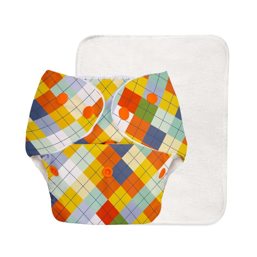 SuperBottoms BASIC™ Cloth Diaper Without Soaker for 3m-3y babies (Peach Geometric) | Washable & Reusable Diapers | Quick Absorption, Lasts 3+ hrs | Leakproof Day Diaper | 0 chemicals