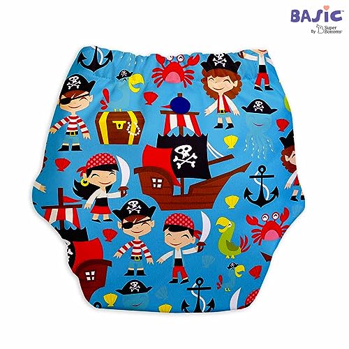 SuperBottoms BASIC™ Cloth Diaper Without Soaker for 3m-3y babies (Pirate) | Washable & Reusable Diapers | Quick Absorption, Lasts 3+ hrs | Leakproof Day Diaper | 0 chemicals