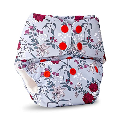 WATERPROOF ADJUSTABLE FREESIZE REUSABLE - Basic cloth diapers fit babies from 5kgs to 17kgs. You can easily adjust the size of the diaper to Small/Medium or Large/Extra Large depending on your baby's weight by snapping the buttons in the front. This helps