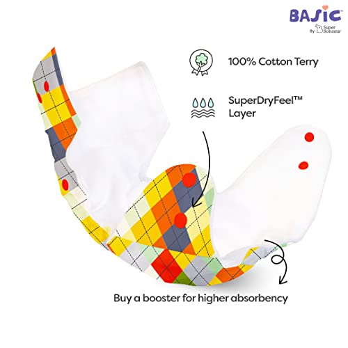 superbottoms Basic Easy-Pack Of 4 Diaper+4 Inserts, Combo Pack Of Assorted Freesize Washable & Reusable Cloth Diaper With Dry Feel Soakers, 5-17 Kilograms, Option 3, Infant