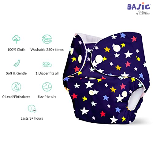 superbottoms Basic Easy-Pack Of 4 Diaper+4 Inserts Combo Pack Of Assorted Freesize Washable & Reusable Cloth Diaper With Dry Feel Soakers 5-17 Kilograms Option 3 Infant