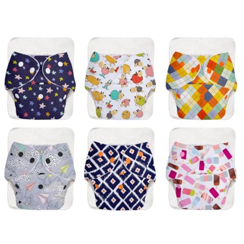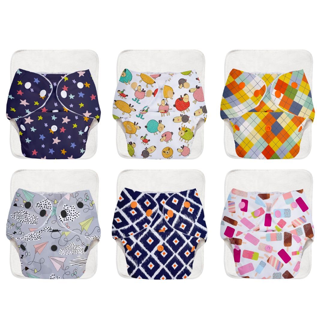 SuperBottoms BASIC EASY - Pack of 6 Assorted Freesize Washable & reusable waterproof adjustable cloth diaper for babies 0-3 years- Outer Shell only - Print may vary