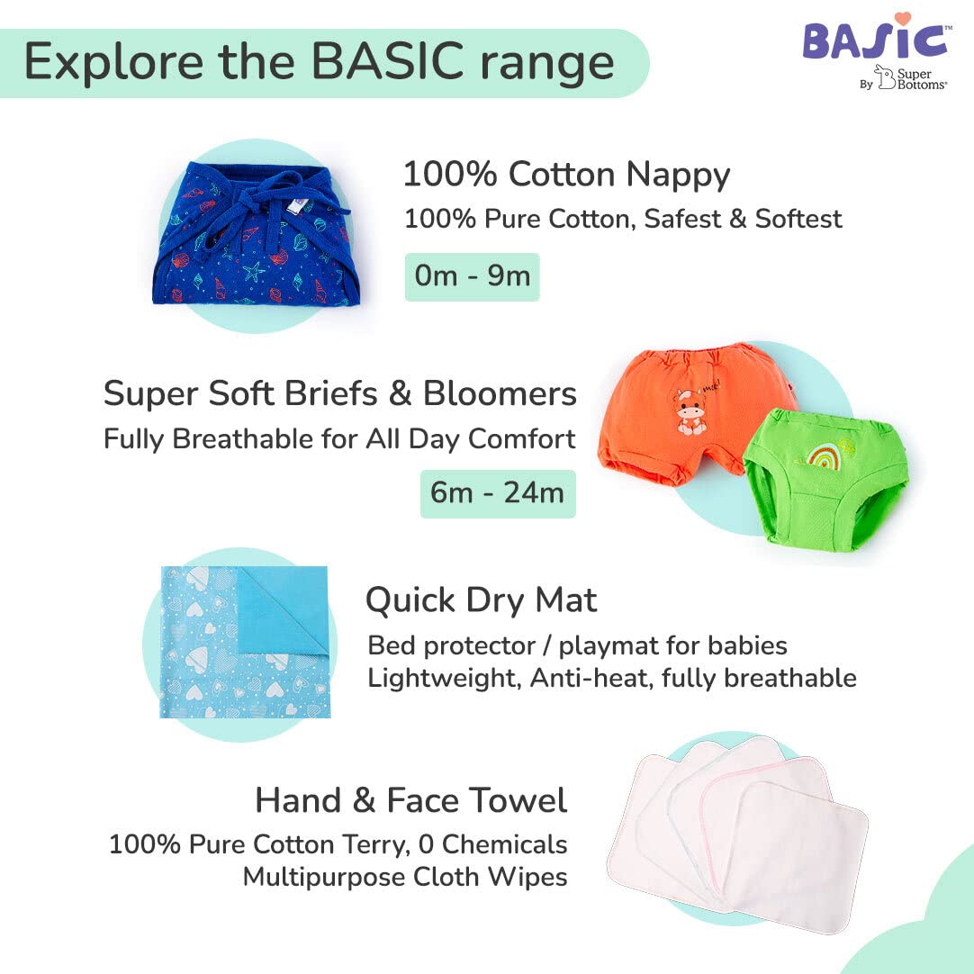 HomeBabyDiaperingCloth DiapersSuperBottoms BASIC Pack of 7 Cloth Diapers for Babies l New Trimmer Version l Adjustable & Washable Cotton Diaper l Rash Free Reusable Diaperl Comes with a Quick Dry Pad l 3M - 3Y | 5-17kgs
