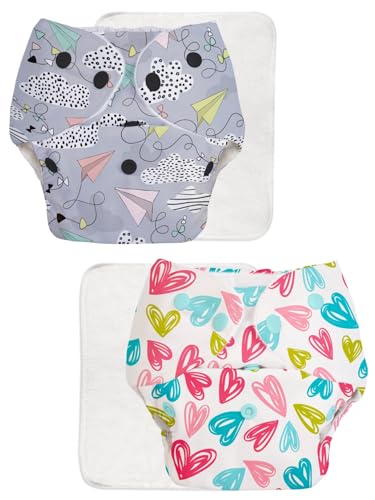 SuperBottoms BASIC Pack of 2 Diaper + 2 Inserts, Combo Pack of Assorted Freesize Washable and reusable cloth diaper with dry feel soakers,Unisex Baby (5-17kgs).