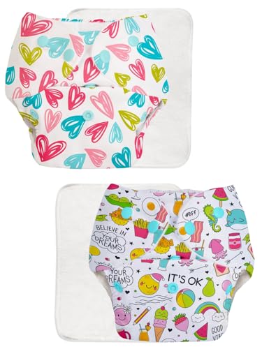 SuperBottoms BASIC Pack of 2 Diaper+2 Inserts Combo Pack of Assorted Freesize Washable and reusable cloth diaper with dry feel soakersUnisex Baby (5-17kgs)