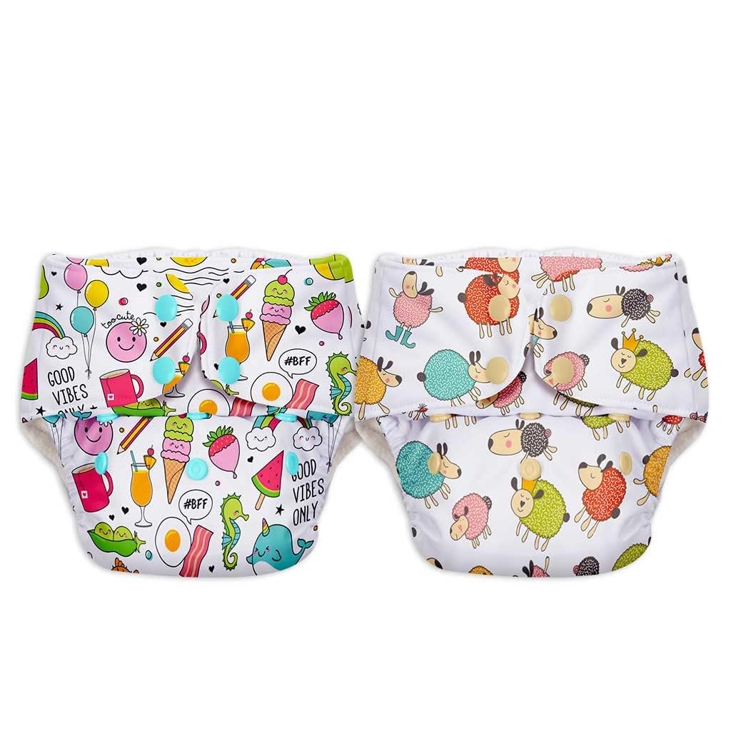 SuperBottoms BASIC Pack of 2 Reusable Cloth Diaper for babies 0-3 Years | Freesize Adjustable Washable and Reusable | Outer Shell only | (WITHOUT dry feel pad/soaker/insert) | Print may vary