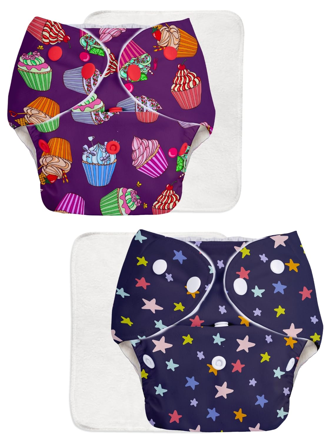 SuperBottoms BASIC Pack of 4 (2 Shell + 2 Insert) Cloth Diapers | Combo Pack of Assorted Freesize Washable and reusable cloth diaper with dry feel soakers(5-17kgs)-Option 8