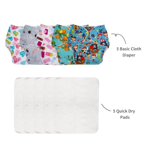 HomeBabyDiaperingCloth DiapersSuperBottoms BASIC Pack of 5 Freesize Adjustable, Washable and Reusable Cloth Diaper for babies 0-3 Years | One Size Adjustable Diapers (Pack of 5 diapers+ 5 inserts) Assorted prints