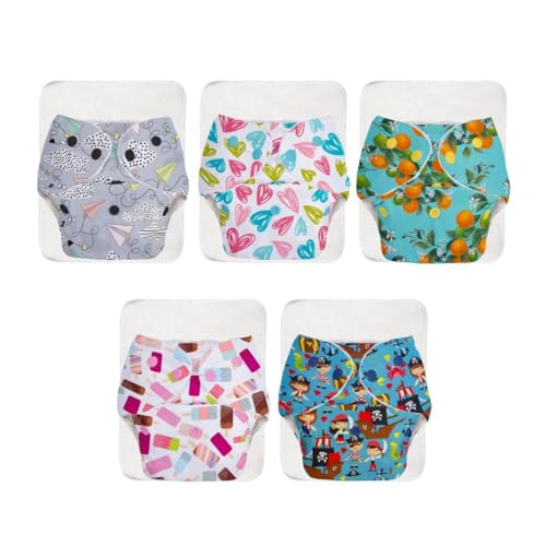 SuperBottoms BASIC Pack of 5 Freesize Adjustable Washable and Reusable Cloth Diaper for babies 0-3 Years | One Size Adjustable Diapers (Pack of 5 diapers+ 5 inserts) Assorted prints