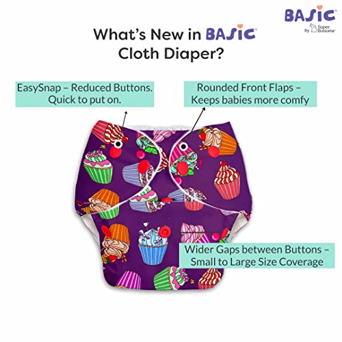 SuperBottoms BASIC Reusable Cloth Diaper for babies 0-3 Years | Freesize Adjustable Washable and Reusable Cloth Diaper for babies for day time use (with dry feel pad/soaker/insert) (Cupcake)