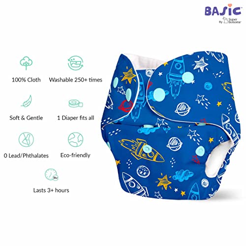 Superbottoms BASIC Reusable Cloth Diaper for babies 0-3 Years | Freesize Adjustable Washable and Reusable Cloth Diaper for babies | NEW Quick Dry UltraThin pads | Trim Fitting