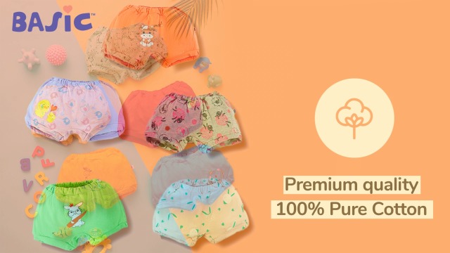 superbottoms Basic Super Soft Bloomer | Unisex 100% Pure Cotton Innerwear | Breathable & Super Soft Underwear | Newborn Panty Baby Bloomer | Pack of 15 Underwear for Kids |Size (9-12 Month)