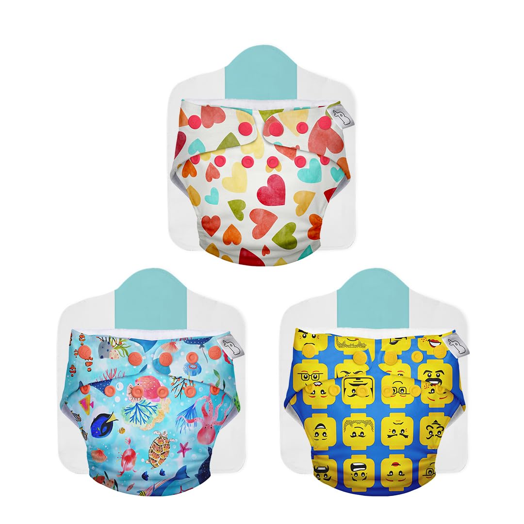 SuperBottoms Cloth Diapers for babies - Cloth Diaper Combo Pack of 3 Freesize UNO- New Version| Reusable Cloth Diapers for babies 3M to 3Y | With 3 organic cotton inserts/pads