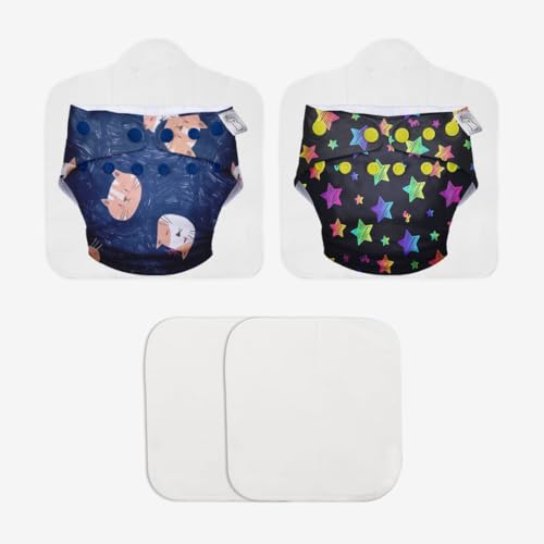 SuperBottoms Combo Pack of 4 (2 Shell + 2 Insert)Freesize UNO-Reusable waterproof Adjustable cloth diaper for babies from 5-17kgs cloth diapers with Dry feel Organic cotton Pad & booster Pad-Option 1
