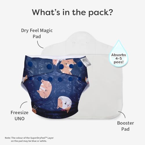 SuperBottoms Combo Pack of 6 (2 Shell + 2 Insert + 2 Booster)Freesize UNO-Reusable waterproof Adjustable cloth diaper for babies from 5-17kgs cloth diapers with Dry feel Organic cotton Pad & booster Pad-Option 1