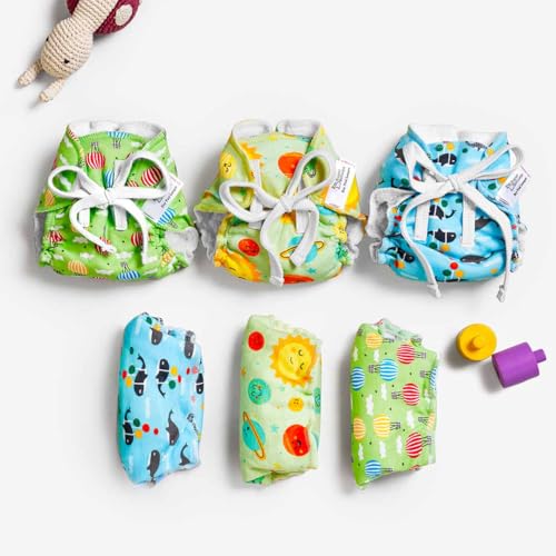 SuperBottoms Dry Feel Langot - Pack of 6- Organic Cotton Padded Nappy/Langot with Gentle Elastics & a SuperDryFeel Layer on top (Size 0 (Fits 0-5 kg) Day Dreamer)