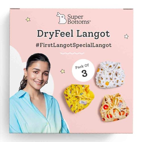 HomeBabyDiaperingCloth DiapersSuperBottoms DryFeel Baby Langot 0-6 months l Organic Cotton Modern Baby Nappy l Mess-free Langot with Gentle Elastics l Super DryFeel Top Layer l Diaper-free Time Essential | 3 Pack