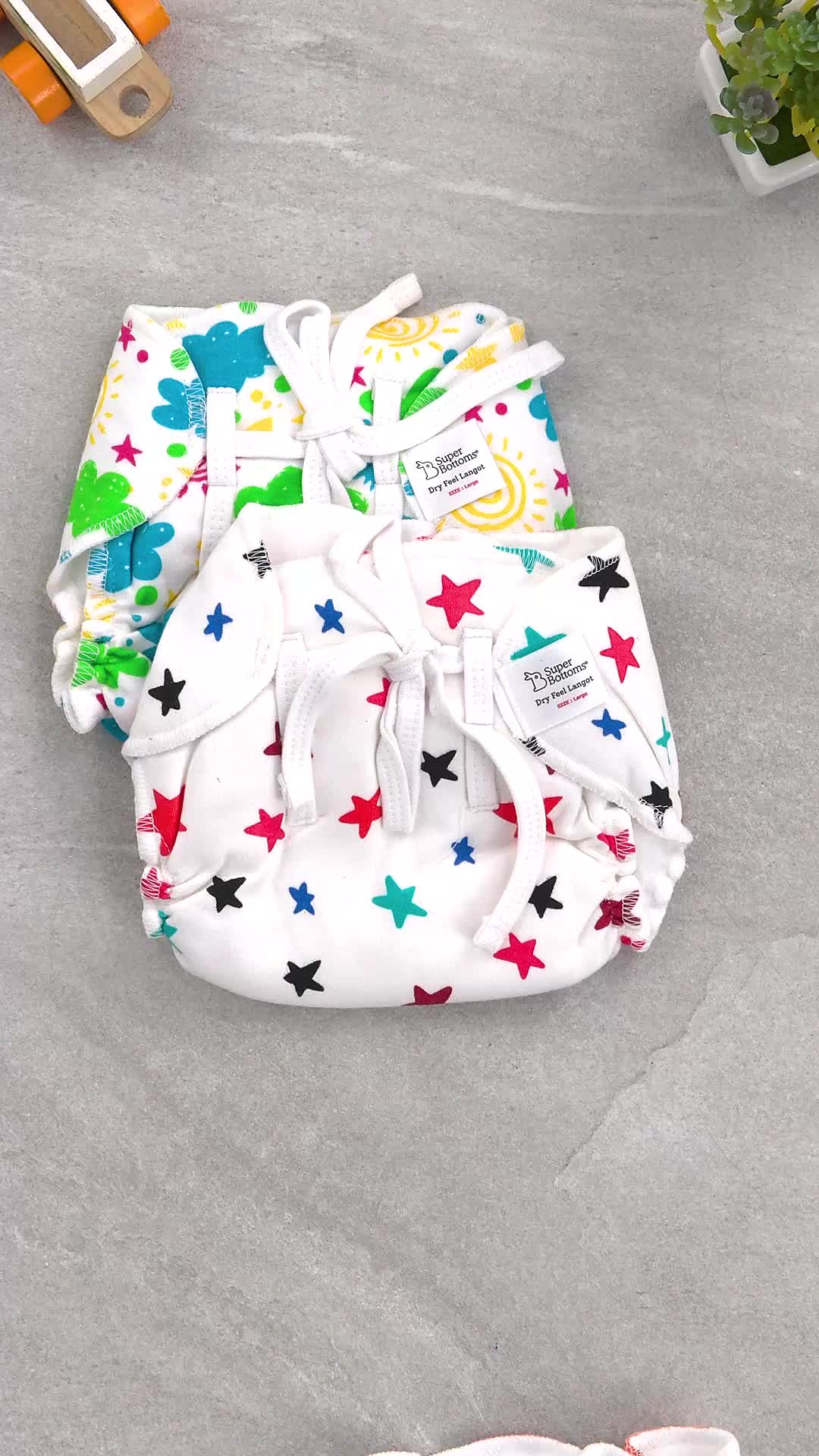 SuperBottoms Dry Feel Padded Langot - Pack of 3- Cotton Langot |Cloth Nappy with Gentle Elastics & a SuperDryFeel Layer on top (Printed Collection Size 2 (Fits 5-10 kg)