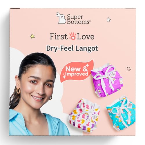 HomeBabyDiaperingCloth Diaperssuperbottoms First Love Dryfeel Langot For Newborn Baby|No Mess Langot|Premium Cotton Padding (No Sponge)|Ultra-Soft|Mess-Free Diaper-Free Time |0-9M|(Bummy World,Pack Of 3,Small),1 Count