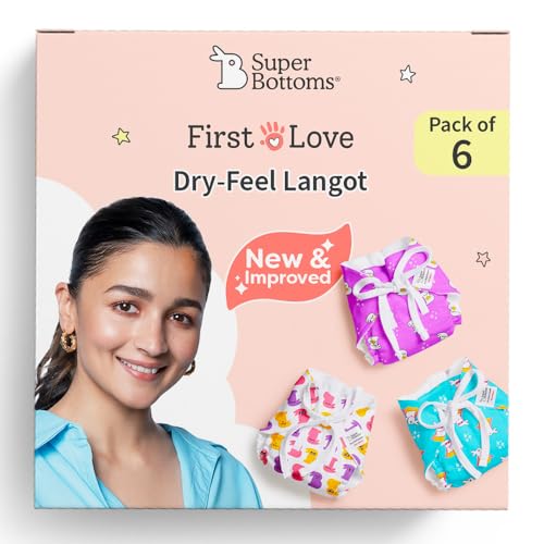 SuperBottoms First Love DryFeel Langot¢ for Newborn Baby | No Mess Langot | Premium Cotton Padding (No Sponge) | Ultra-Soft | Mess-Free Diaper-Free Time | 0-9M | (Bummy World Pack of 6 Large)