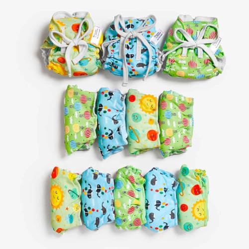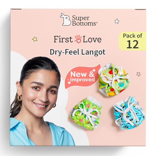 SuperBottoms First Love DryFeel Langot¢ for Newborn Baby | No Mess Langot | Premium Cotton Padding (No Sponge) | Ultra-Soft | Mess-Free Diaper-Free Time | 0-9M | (Day Dreamer Pack of 12 Large)
