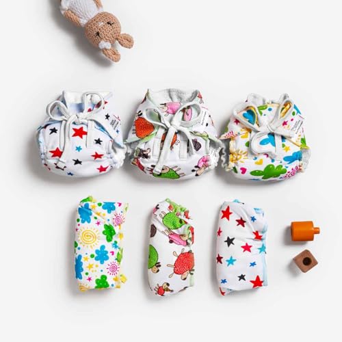 SuperBottoms First Love DryFeel Langot¢ for Newborn Baby | No Mess Langot | Premium Cotton Padding (No Sponge) | Ultra-Soft | Mess-Free Diaper-Free Time | 0-9M | (Printed Pack of 6 Large)