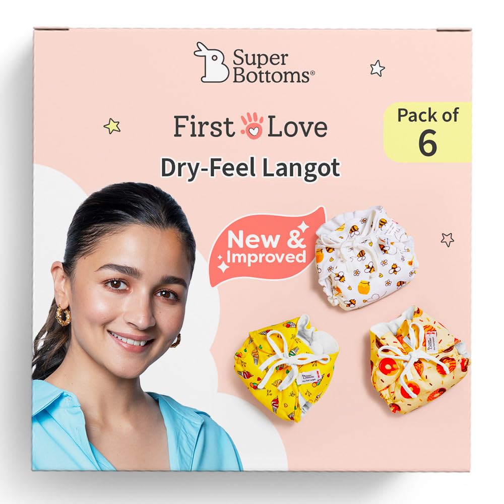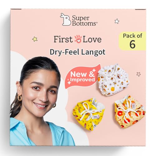 HomeBabyDiaperingCloth DiapersSuperBottoms DryFeel Baby Langot 0-6 months l Organic Cotton Modern Baby Nappy l Mess-free Langot with Gentle Elastics l Super DryFeel Top Layer l Diaper-free Time Essential | 6 Pack
