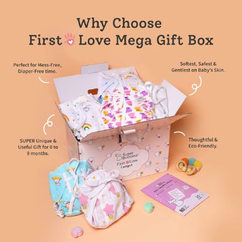 HomeBabyDiaperingCloth DiapersSuperBottoms First Love Mega Gift Box | Softest, Breathable & Gentlest langots for your baby | Baby shower gift pack | No Mess Langots for Newborns between 0 to 9 months | Pack of 31 (Size: Small)