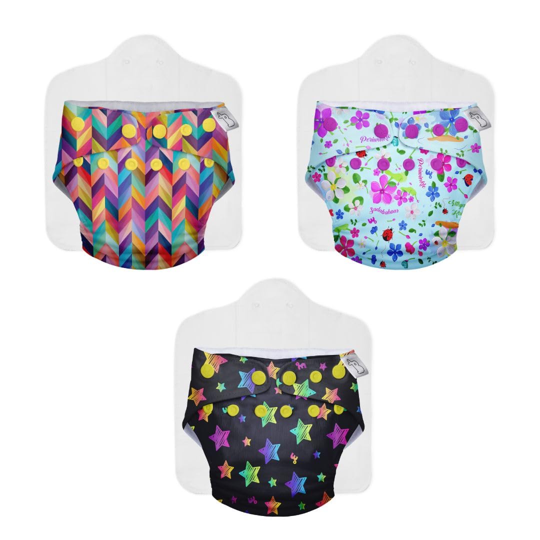 Superbottoms NEW UNO Freesize Cloth Diaper Set of 3| Cloth diaper for babies 3M to 3Y | Washable & Reusable cloth diaper | Comes with cloth diaper insert | 3 Diaper and 3 Organic cotton Soaker