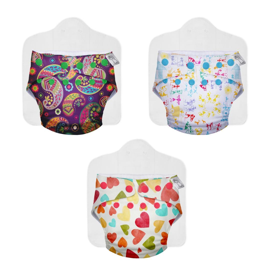 Superbottoms NEW UNO Freesize Cloth Diaper Set of 3| Cloth diaper for babies 3M to 3Y | Washable & Reusable cloth diaper | Comes with cloth diaper insert | 3 Diaper and 3 Organic cotton Soaker