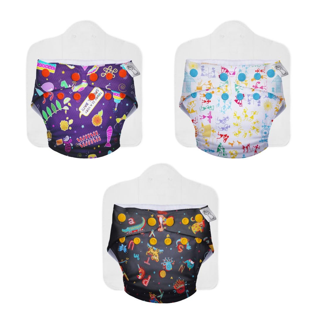 Superbottoms NEW UNO Freesize Cloth Diaper Set of 3| Cloth diaper for babies 3M to 3Y | Washable & Reusable cloth diaper | Comes with cloth diaper insert | 3 Diaper and 3 Organic cotton Soaker