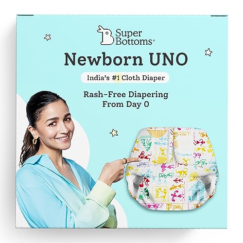 SuperBottoms NewBorn UNO Cloth Diaper | AIO Cloth diapers for babies | Cloth Diaper for Newborn Babies 0 to 6 months | Pack of 1 Cloth diaper with 1 insert (Warli)